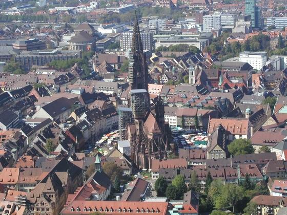 Die Innenstadt von Freiburg wurde im zweiten Weltkrieg zerstört, wie viele andere deutsche Städte. Heute ist Freiburg eine schöne, sonnige Stadt in Süddeutschland